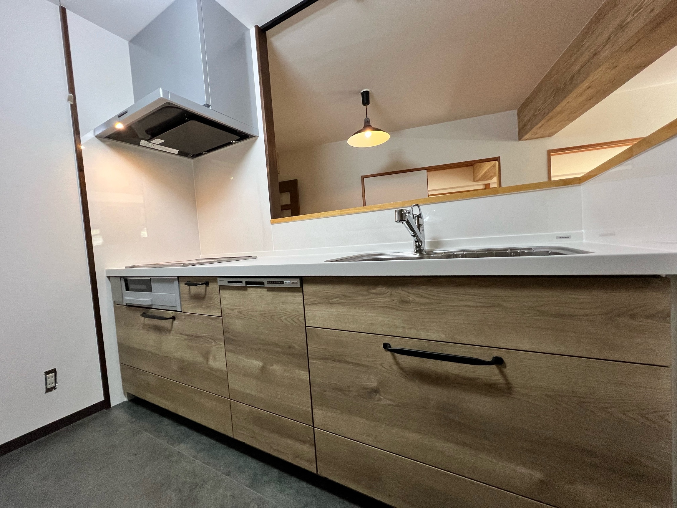 キッチン上部の下がり壁は撤去し、空間をより広く、開放的に演出。圧迫感を感じない、現代的なデザインに仕上がりました。