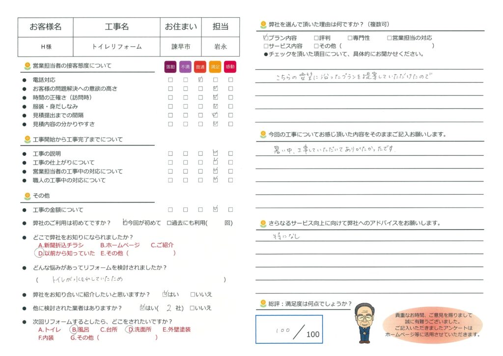 諫早市|トイレリフォーム|LIXIL アメージュ|H様邸