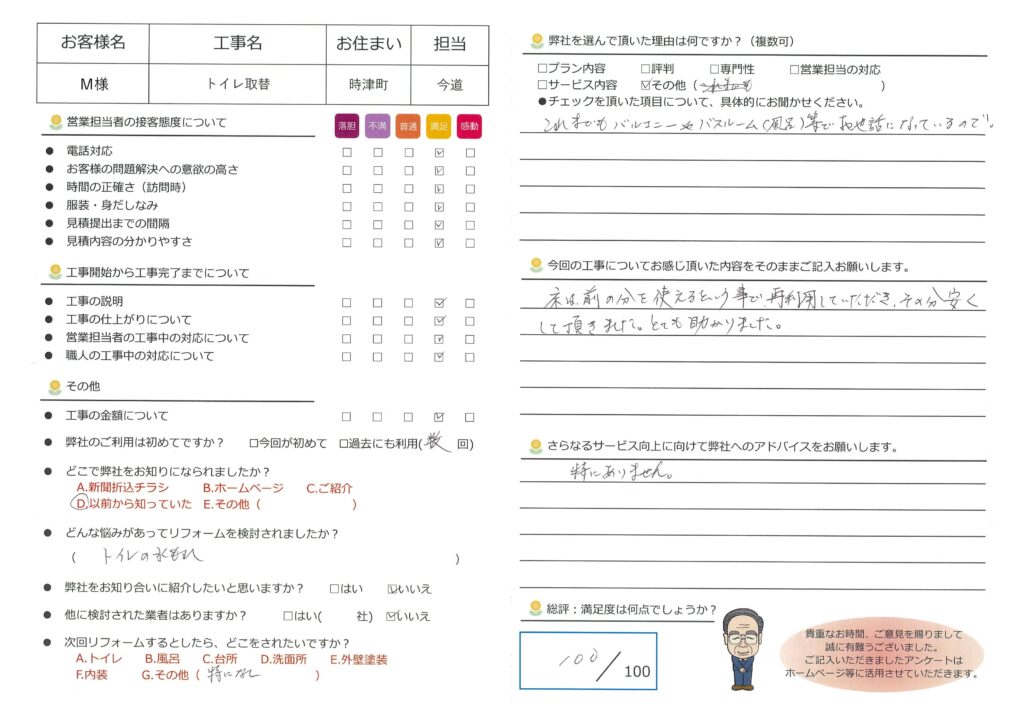 時津町|トイレリフォーム|TOTO ピュアレストQR|M様邸