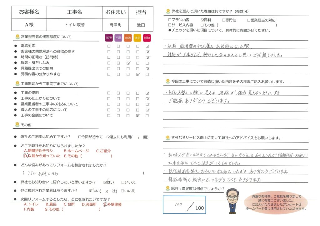時津町|トイレリフォーム|TOTO ピュアレストQR|A様邸