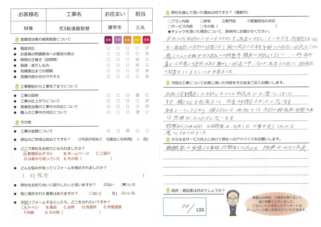 諫早市|ガス給湯器取替|リンナイ エコジョーズ|M様邸