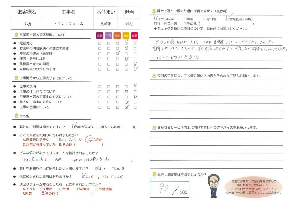 長崎市|トイレリフォーム|TOTO ピュアレストQR|K様邸