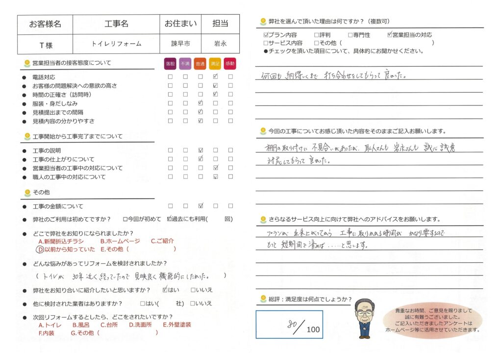 諫早市|トイレリフォーム|TOTO ネオレストNX|T様邸